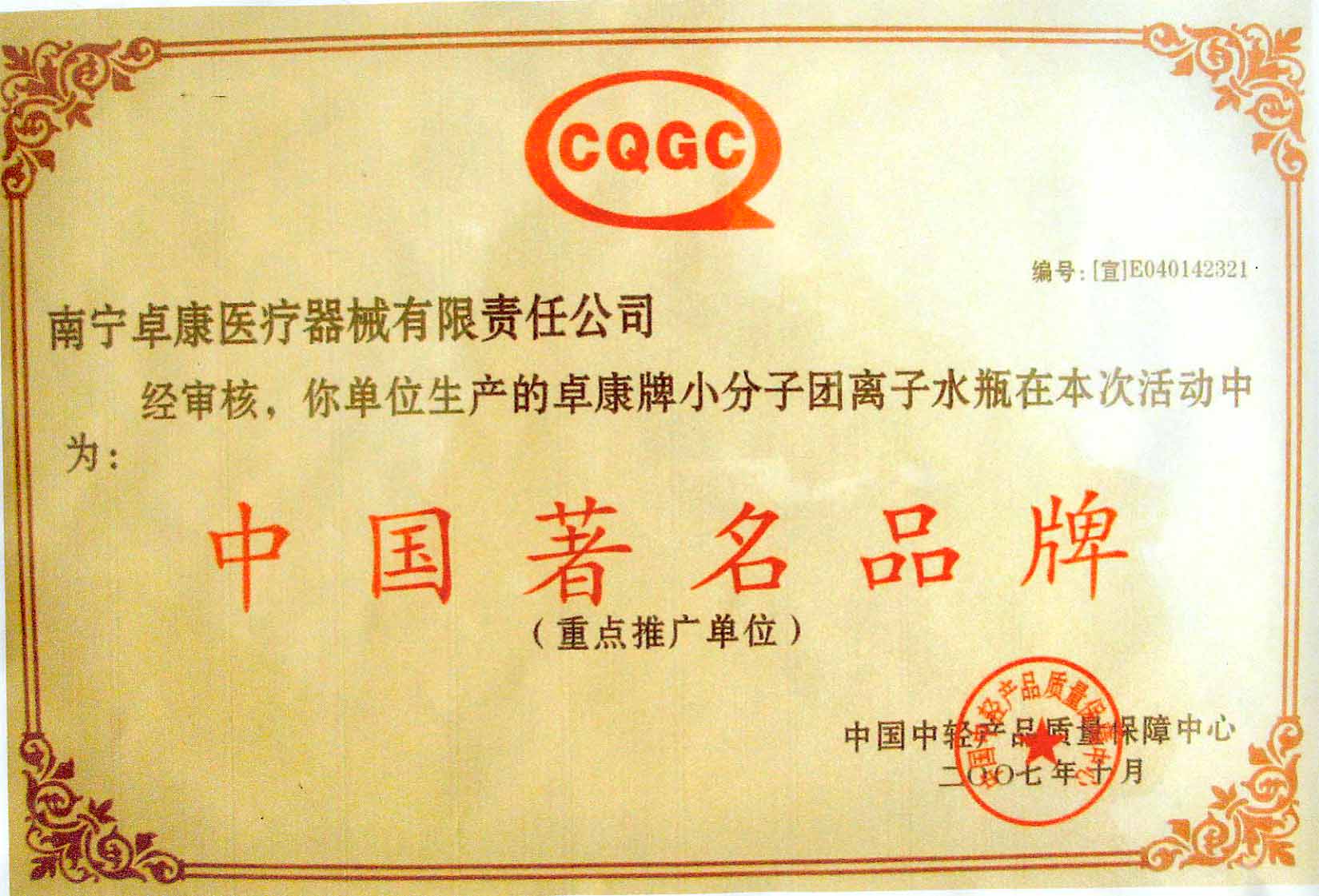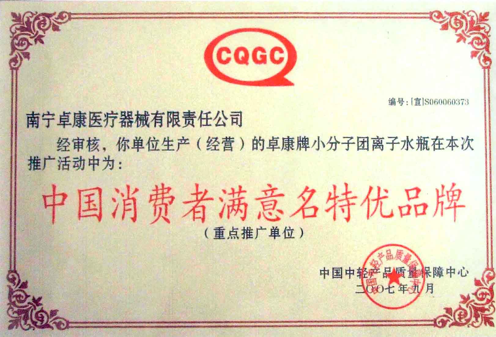 卓康牌離子水瓶榮獲中國企業(yè)名優(yōu)產(chǎn)品[點小圖見大圖]、中國著名品牌稱號[點小圖可見大圖]