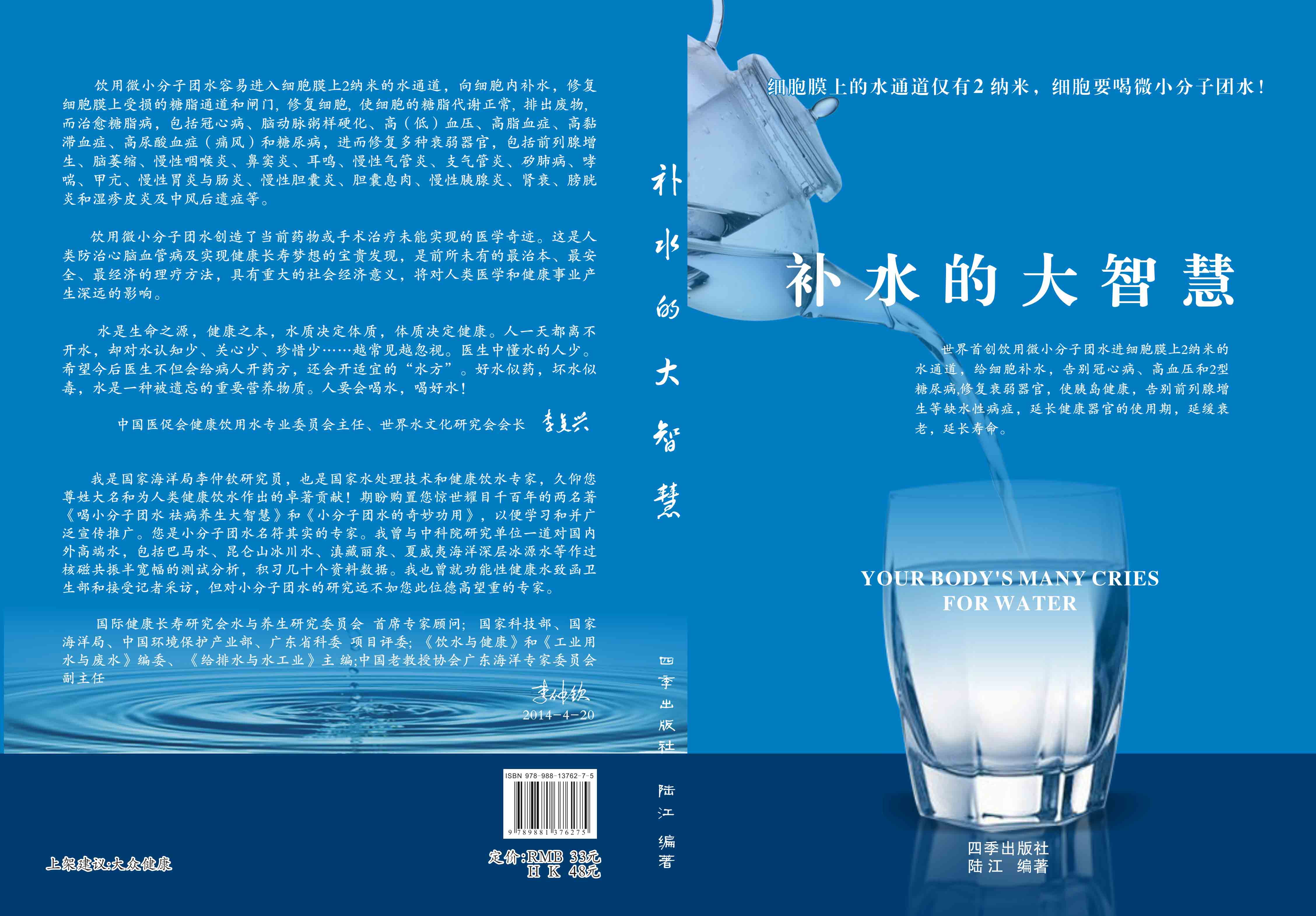----幾千年來,人們感到口渴才喝水,誤認為口渴是唯一的缺水信號,使喝水量偏少。很多人只知道補血補氣補腎補鈣補硒,而不知補水,逐漸使許多器官缺水,包括皮膚、動脈、氣管、膽囊、腸胃、骨關節(jié)、腎臟、前列腺和胰島缺水,以致患冠心病、高(低)血壓和糖尿病等缺水性病癥。美國F·巴特曼醫(yī)學博士寫有《水是最好的藥》一書很受歡迎,我國2007年譯成中文版,論述人體缺水引起許多病癥,他指導3000多患者喝水治愈了哮喘、胃炎和高血壓等病癥。而我是從2000年起,讓患者飲用微小分子團水,因為容易進細胞膜上2納米的水通道,治愈了許多缺水性的病。我跟蹤調查14年,發(fā)現(xiàn)凡是認真飲用和合理膳食,可治愈冠心病、高(低)血壓和2型糖尿病與衰弱器官并發(fā)癥及中風后遺癥。高血壓患者飲用2~5個月,癥狀消除,不再服藥,逐漸逆轉至消除動脈粥樣硬化,血壓正常穩(wěn)定,治愈了高血壓;冠心病人飲用3~5個月,消除心絞痛、房顫等癥狀,不再服藥,一年左右心電圖正常,經(jīng)冠狀動脈造影掃描表明冠脈內無粥樣斑塊,真正治愈了冠心病;2型糖尿病人飲用3~10個月停藥,血糖尿糖正常,糖尿病痊愈。并且使前列腺增生、慢性咽喉炎、鼻竇炎、耳鳴、慢性氣管炎、支氣管炎、哮喘、矽肺病、慢性胃腸炎、膽囊炎、胰腺炎、腎衰、膀胱炎、風濕性關節(jié)炎、便秘、痔瘡和濕疹皮炎等不藥而愈,而無需終生服藥。飲用微小分子團水治愈的是長期吃藥治不好的病,彌補了幾千年來醫(yī)藥的欠缺,成為人類健康的寶貴資源。